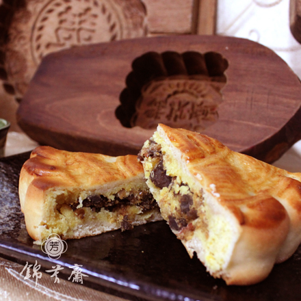 綠豆沙、魯肉、鹹蛋黃、蔥酥、肉脯、麵粉、豬油、糖、蛋